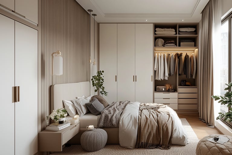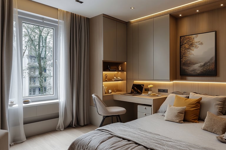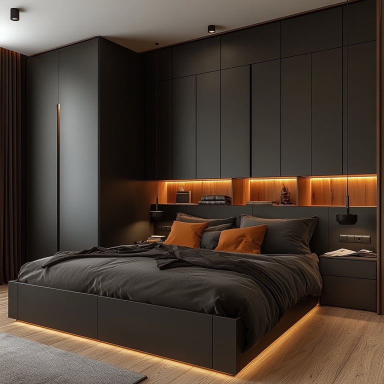 Miegamajame praleidžiate trečdalį savo gyvenimo, o baldų išdėstymas, proporcijos, spalvos ir daiktų laikymo sprendimai čia turi tiesioginį poveikį jūsų poilsiui. Mūsų užduotis - suprojektuoti baldus, kurie pulsuoja ramybe, jaukumu ir estetika.