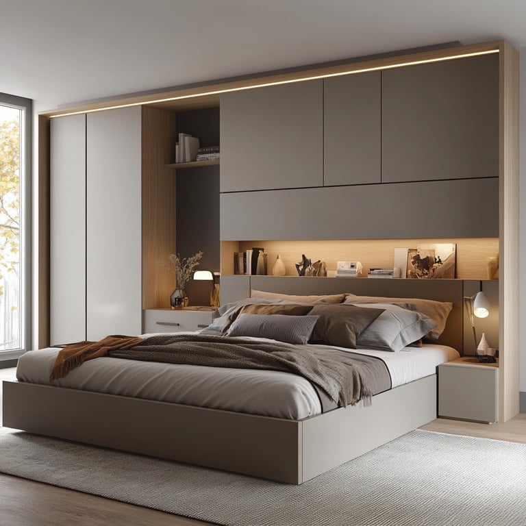 Miegamojo baldų dizaino vizualizacijas sukūrėme pasitelkiant dirbtinį intelektą. Tiek šias, tiek jūsų idėjas galime įgyvendinti pagal individualų užsakymą.
