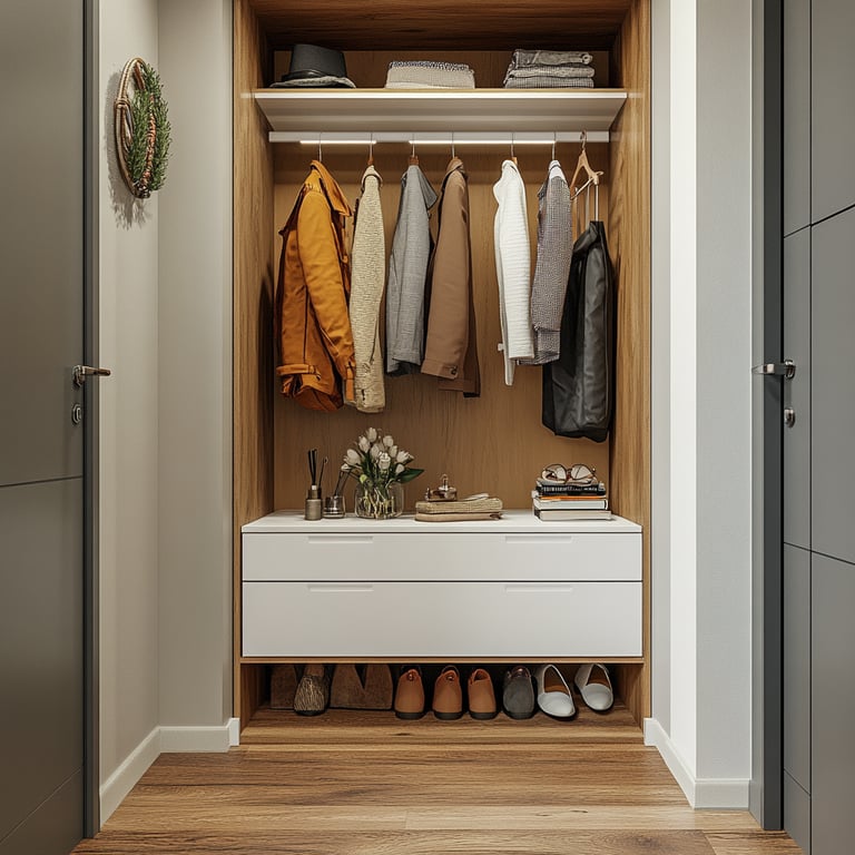 Prieškambaris – pirmoji namų erdvė, į kurią įžengiame po darbo dienos. Tad siūlome jums baldus, kurie sujungia estetiką ir jaukumą. Siekiame, kad čia tilptų viskas, ko jums reikia - batai, raktai, sezoniniai drabužiai - bet erdvė išliktų stilinga, lengva ir neapkrauta.
