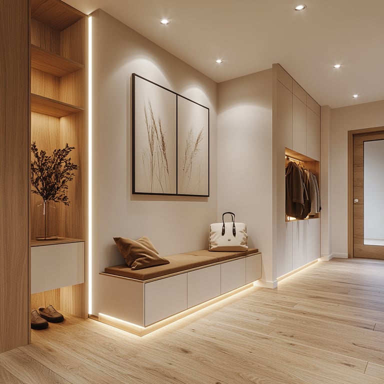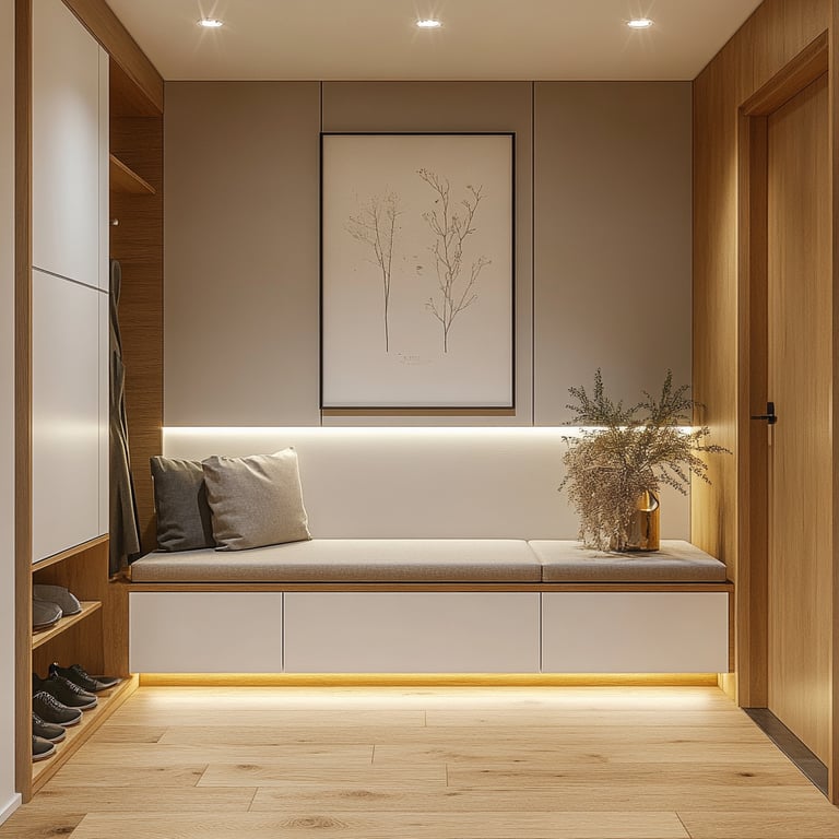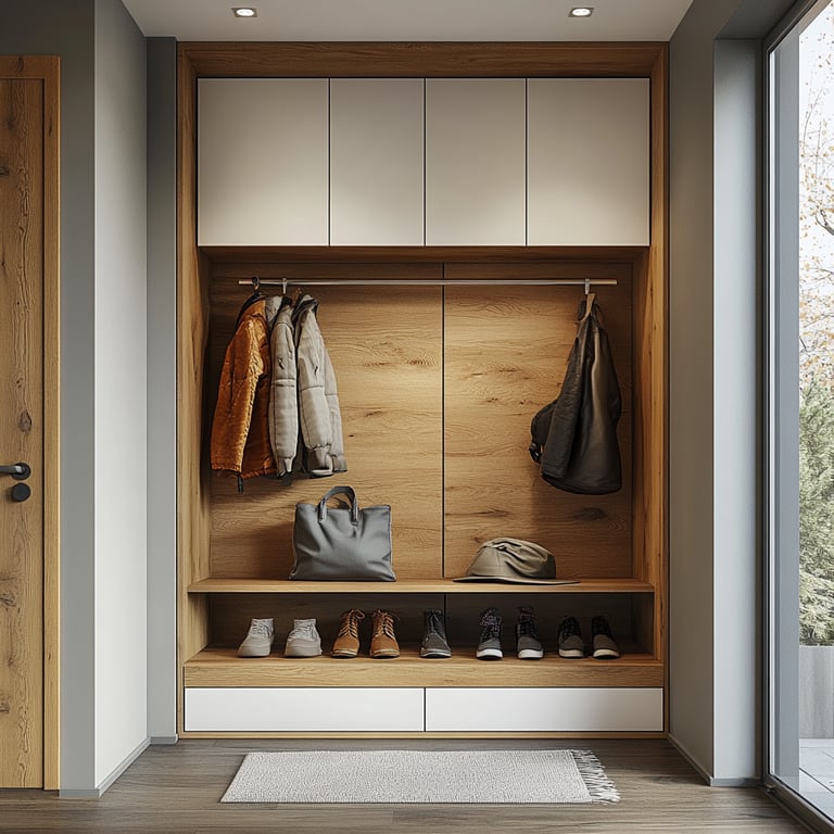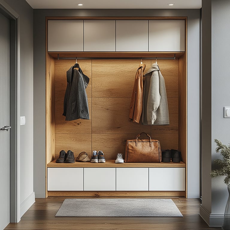 Prieškambario baldų dizaino vizualizacijas sukūrėme pasitelkiant dirbtinį intelektą. Tiek šias, tiek jūsų idėjas galime įgyvendinti pagal individualų užsakymą.